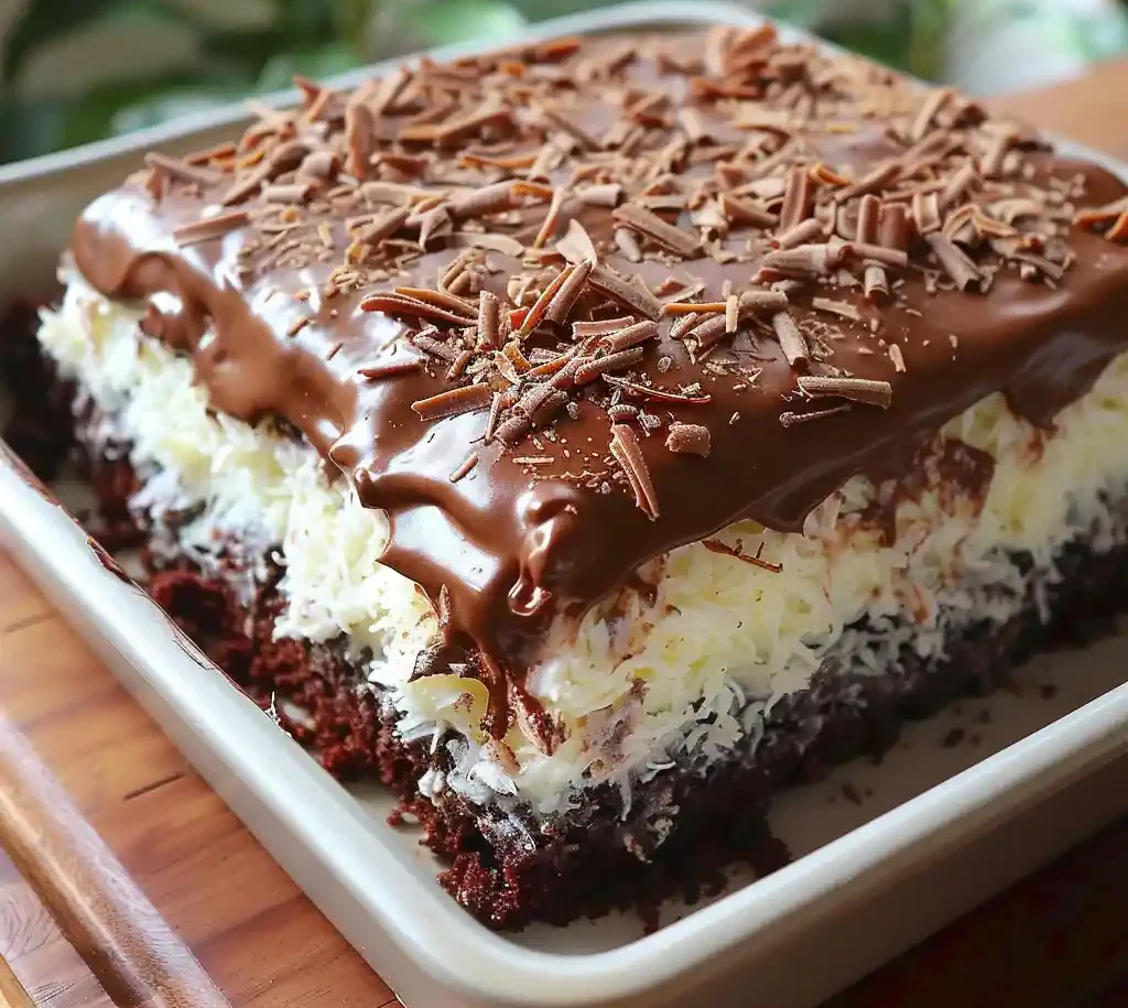 Creamy Coconut Filling: Sweetened condensed milk binds with shredded coconut and powdered sugar to create a luscious filling that’s both chewy and creamy. This layer adds tropical sweetness and contrasts beautifully against the dark chocolate foundation.