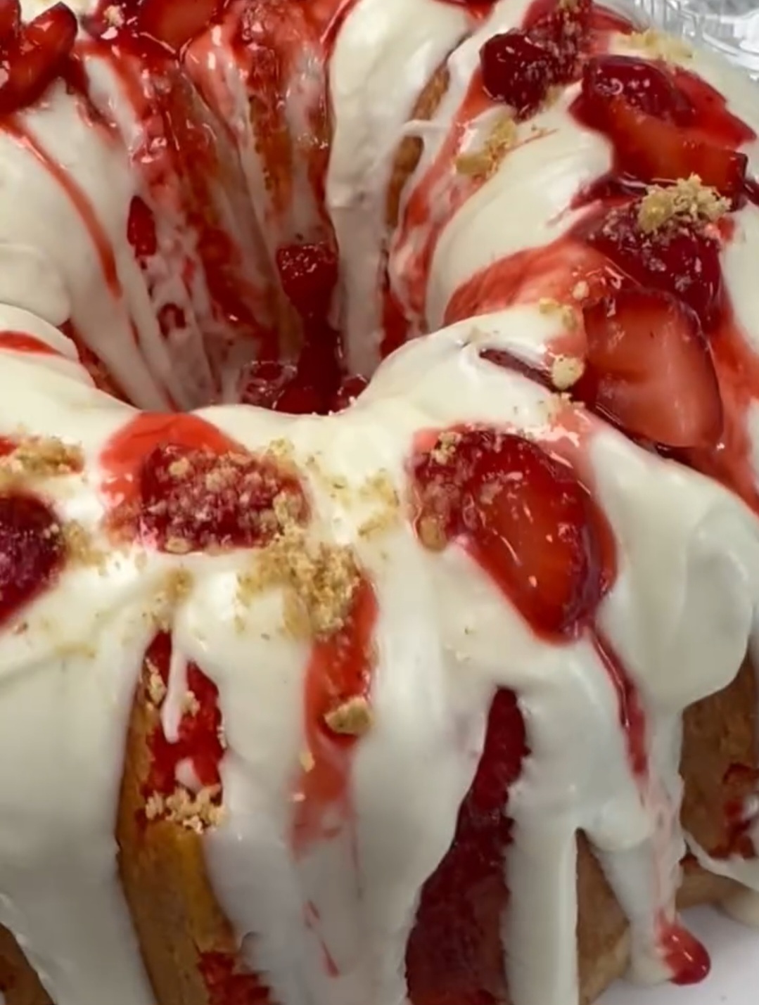 The combination of pound cake, cheesecake, and strawberries creates a multi-layered flavor profile that is both comforting and elegant. It’s visually stunning with its marbled layers and glossy glaze, making it a centerpiece-worthy dessert.