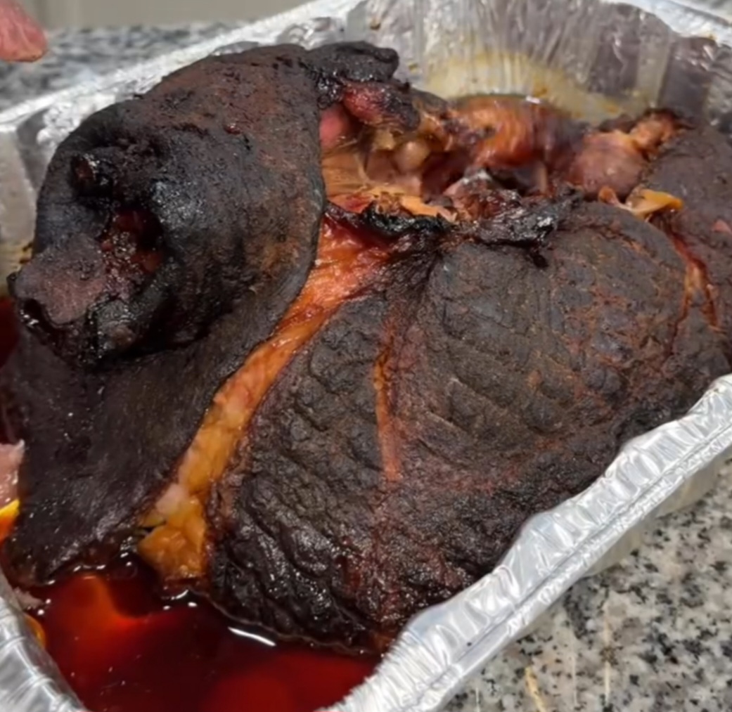 Layered Flavors: The combination of mustard, liquid smoke, and brown sugar rub creates a savory-sweet base, while cola in the roasting pan keeps the ham moist and adds subtle caramel notes.