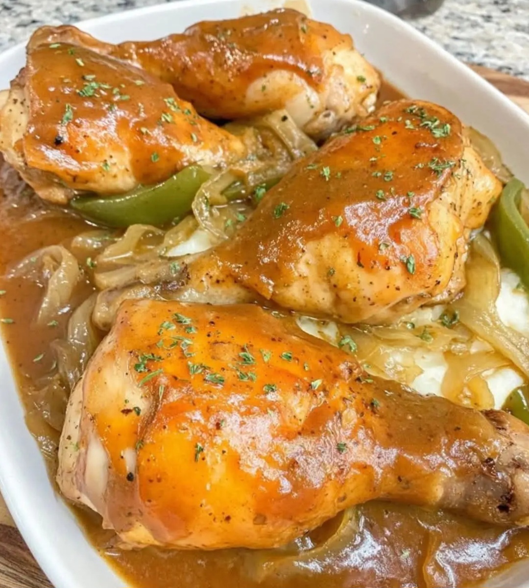 Another reason Crockpot Smothered Chicken Legs work so well is the balance of textures and flavors. The onions and bell peppers soften beautifully, adding sweetness and depth to the dish. The gravy, made with cream of chicken soup and brown gravy mix, creates a velvety sauce that coats every bite of chicken.