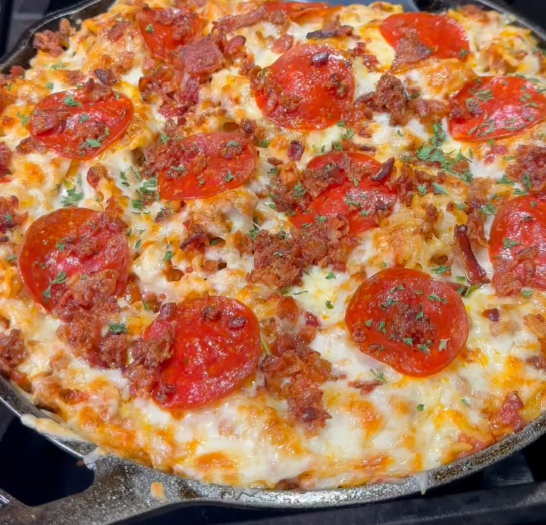 Top the sauce and meat mixture with the cooked orzo. Sprinkle shredded mozzarella evenly over the top, then add bacon bits and a few extra pepperoni slices. Layering ensures every bite has a perfect balance of pasta, cheese, and toppings.